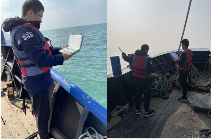 此次大小潮期間12名檢測(cè)人員調(diào)用了4艘船只,按監(jiān)測(cè)方案采集檢測(cè)了水質(zhì)、生態(tài)、沉積物、漁業(yè)資源,同時(shí)安排4名檢測(cè)人員同步開(kāi)展陸上潮間帶采樣檢測(cè)工作。